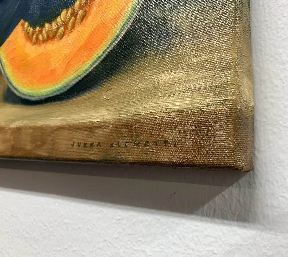 Realistinen tyyli vangitsee hedelmän mehukkaan pinnan ja kirkkaat värit, tuoden mieleen kesän makeuden ja raikkauden. Halusin välittää lempeän ja kutsuvan tunnelman, joka muuttaa arjen hetken joksikin erityiseksi – valaisemaan tilaa luonnollisella hehkullaan ja hienovaraisella viehätyksellään.