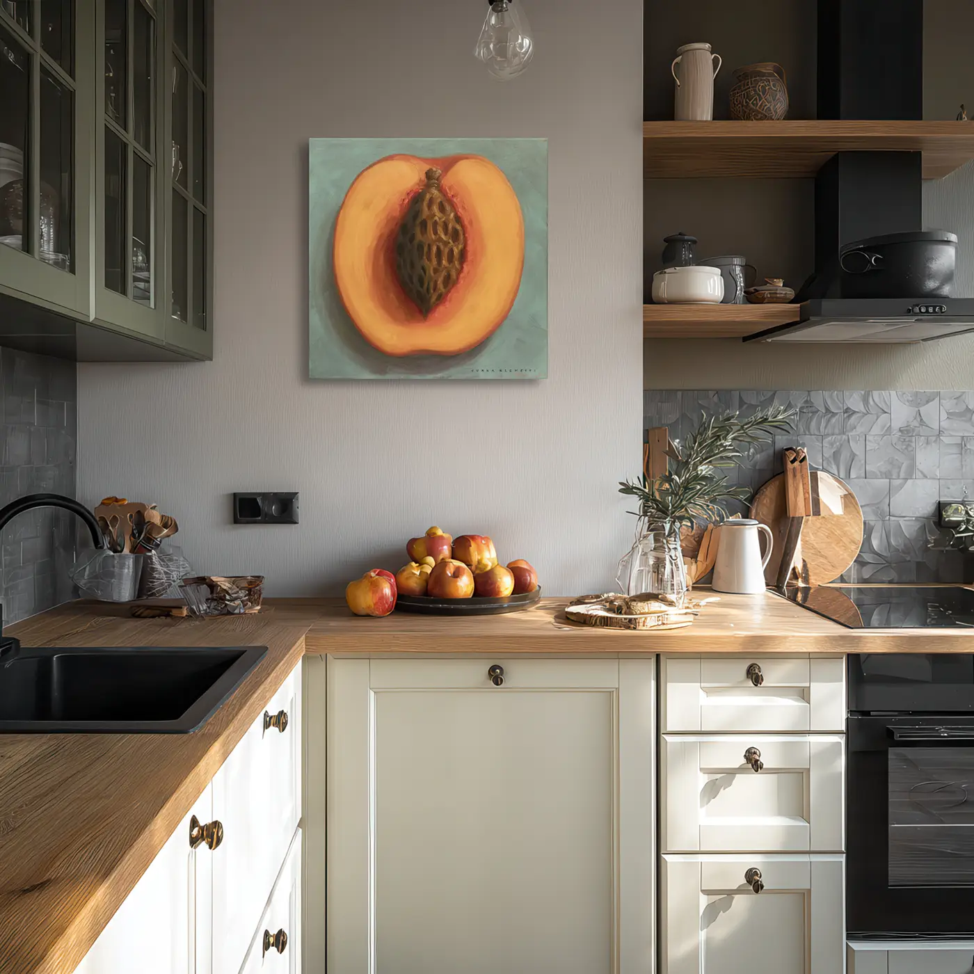 In this piece, I poured deep passion into every brushstroke to capture the luscious warmth and intricate texture of this peach. The rich oil medium allowed me to emphasize its natural glow and realism, inviting you to feel the sweetness and vitality bursting from its core. This painting radiates comforting energy, perfect to brighten any space with a sense of nature’s intimate beauty and timeless freshness.